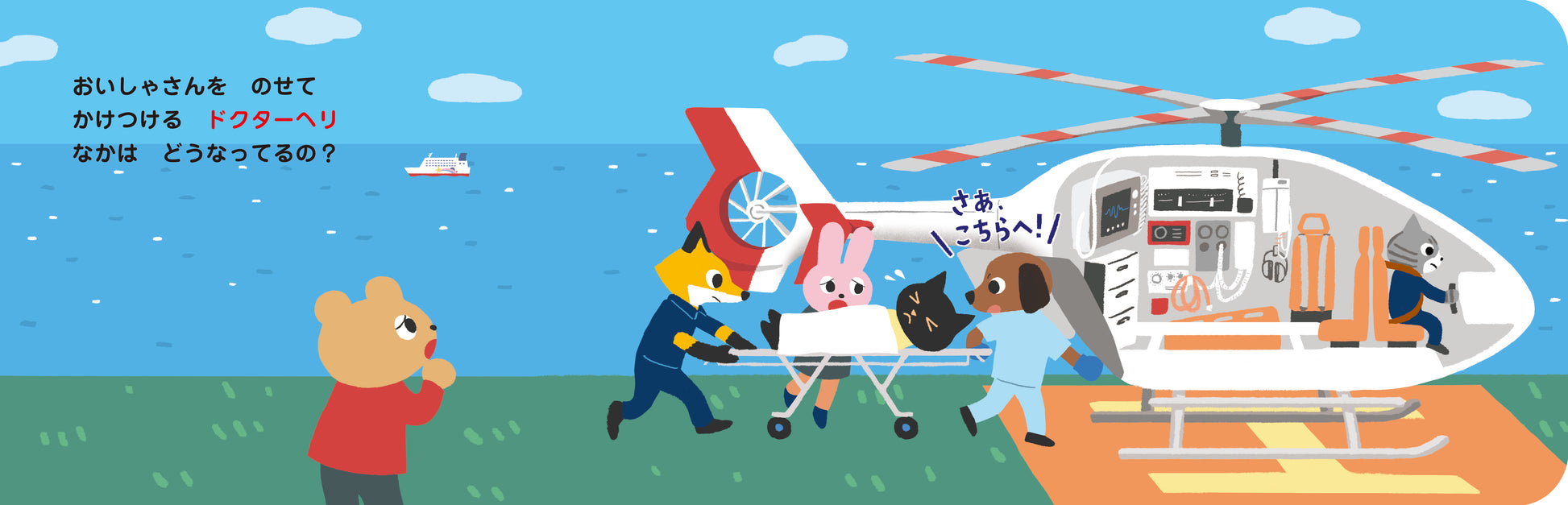 電車・消防車・飛行機など「どうやって動くの?」「なかはどうなってるの?」がわかる乗り物絵本。大きく広がるページをめくると、のりものの中(断面)が現れます。