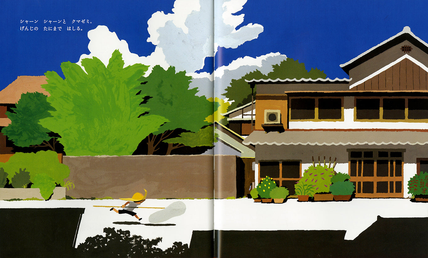 蝉の声、日差しの強さなど、日本の夏そのままの空気を感じられます。少年が虫取り網を手に走り回る姿はシンプルながら力強く、読み手の記憶を呼び起こすようなリアリティも。