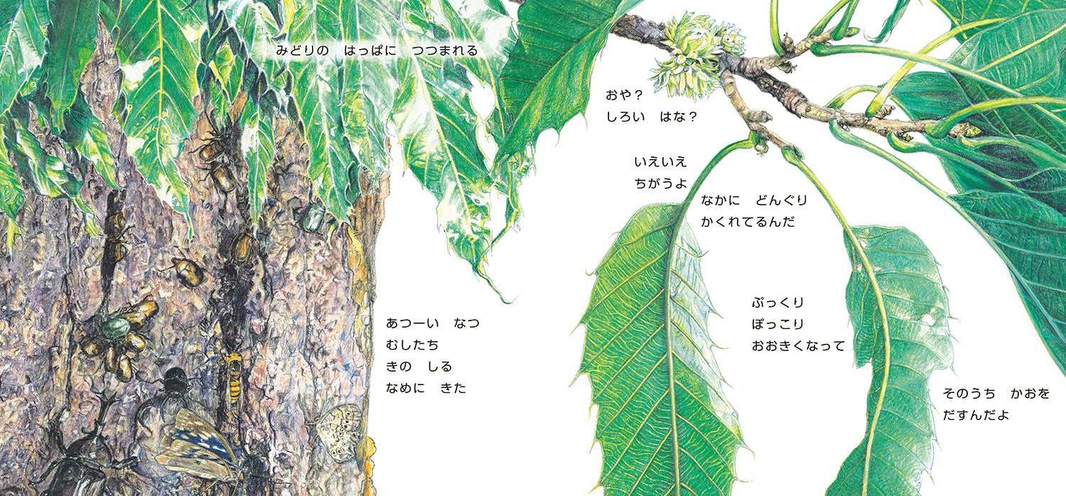 どんぐりが木から落ち、ころころと転がる冒険をリズミカルな言葉と迫力ある構図で描いた絵本。巻末にはどんぐりクッキーの作り方や遊びの提案もあり、親子で楽しめる実用性も魅力です。秋の自然観察や季節の読み聞かせに最適な一冊。
