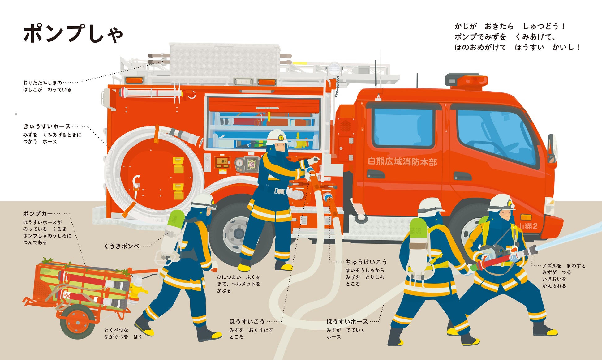 緊急車両がどんな仕事をしているのか、わかりやすく描いた人気の乗り物絵本。消防車・救急車・パトカーなどの働きぶりを丁寧に紹介し、「乗り物好きの子が何度も読んでとせがむ」「本物のような描写が良い」とレビューでも評価されています。