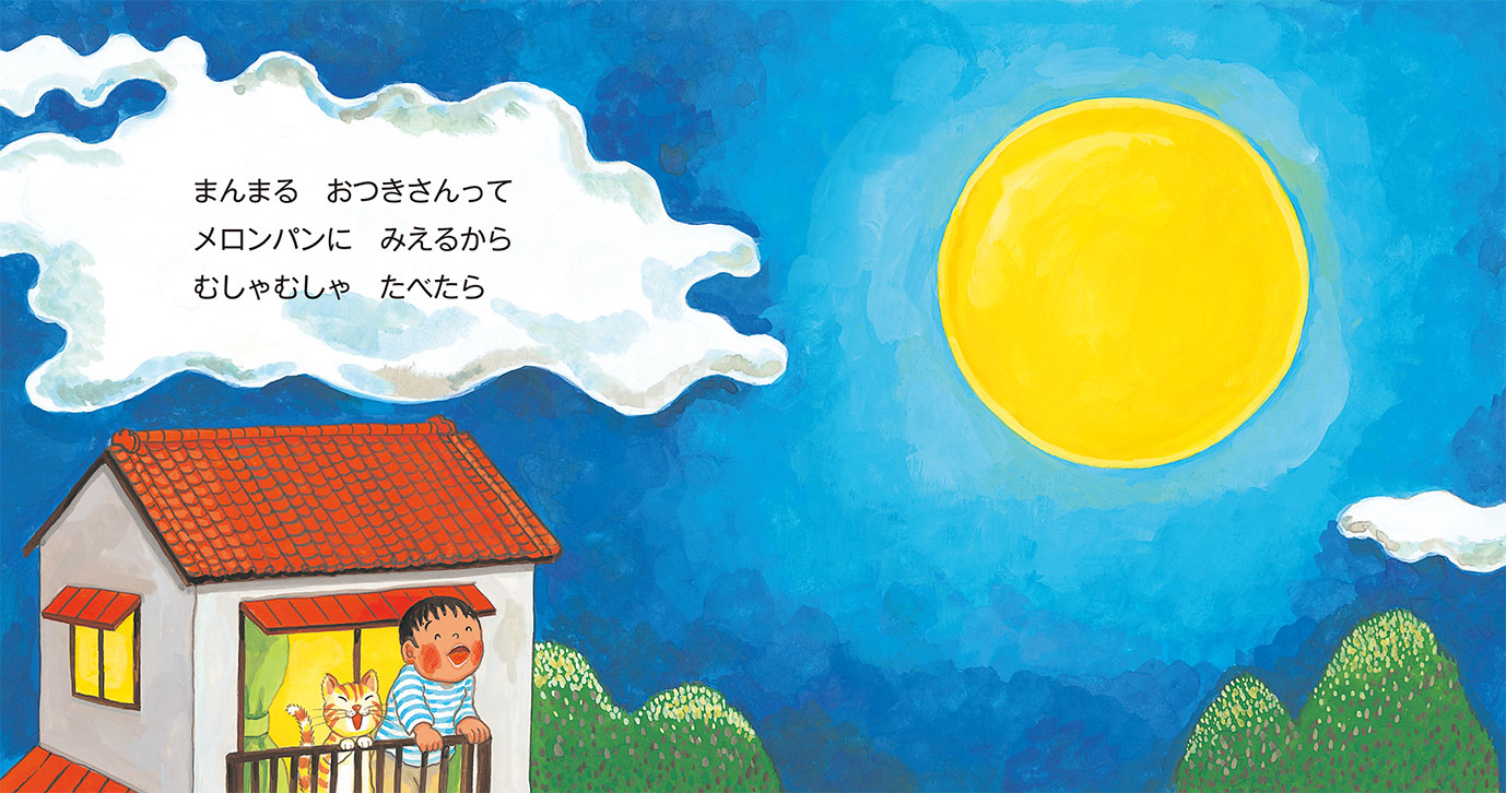 夜空の“まんまるおつきさん”が、おせんべいやメロンパン、めだまやき…次々に大好きな食べ物に見える、ユニークな発想あそび絵本。