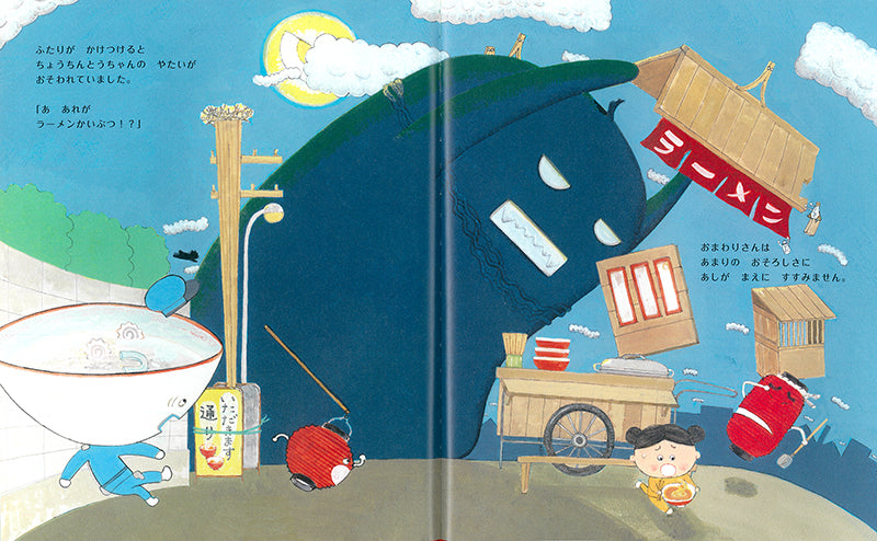 新人「ラーメンおまわりさん」が大奮闘!おまわりさんなのに、なぜかラーメン屋さん――という奇想天外な設定で、レンゲやおまわりさんの帽子、おかもちなど、子どもが大好きなモチーフがぎゅっと詰まったユーモア絵本。
