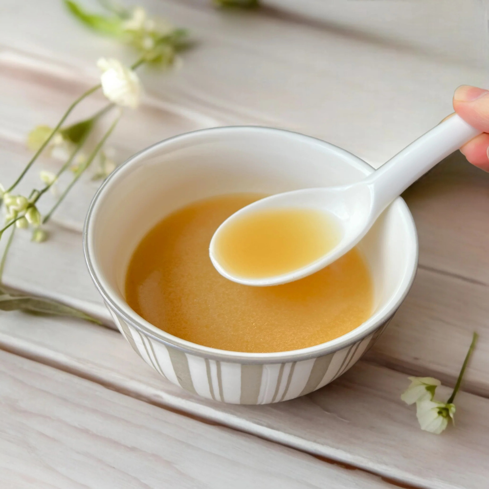 豆乳のまろやかさと昆布出汁の旨みが織りなす、甘口で奥深い味わいの液体スープ。豆乳特有のクセを控えた食べやすさが魅力です。